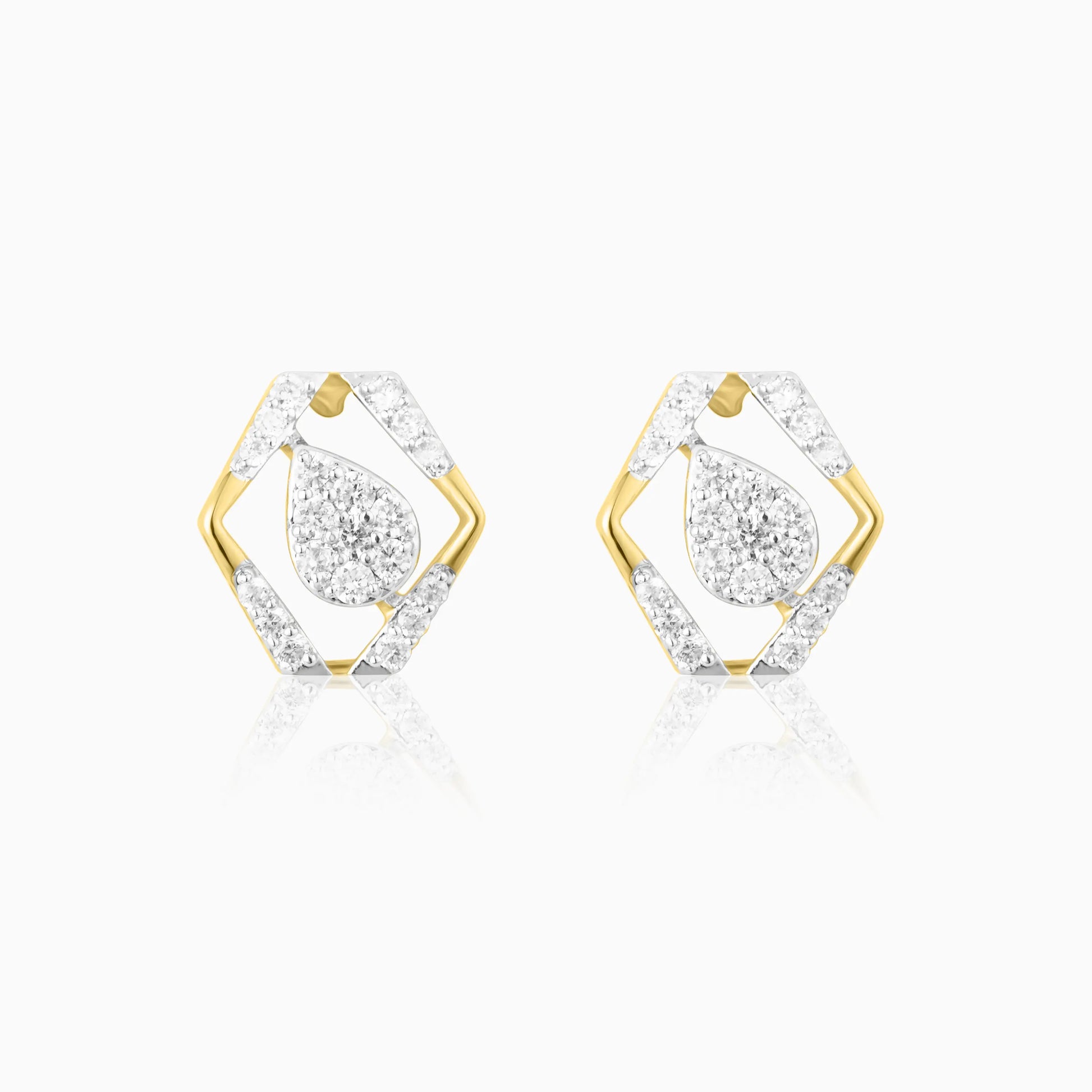 The Hexagonal Frame Diamond Earrings feature a unique hexagonal design, with a sparkling diamond centre framed by a halo of shimmering stones. These geometric earrings combine modern style with timeless elegance, making them perfect for both everyday wear and special occasions.