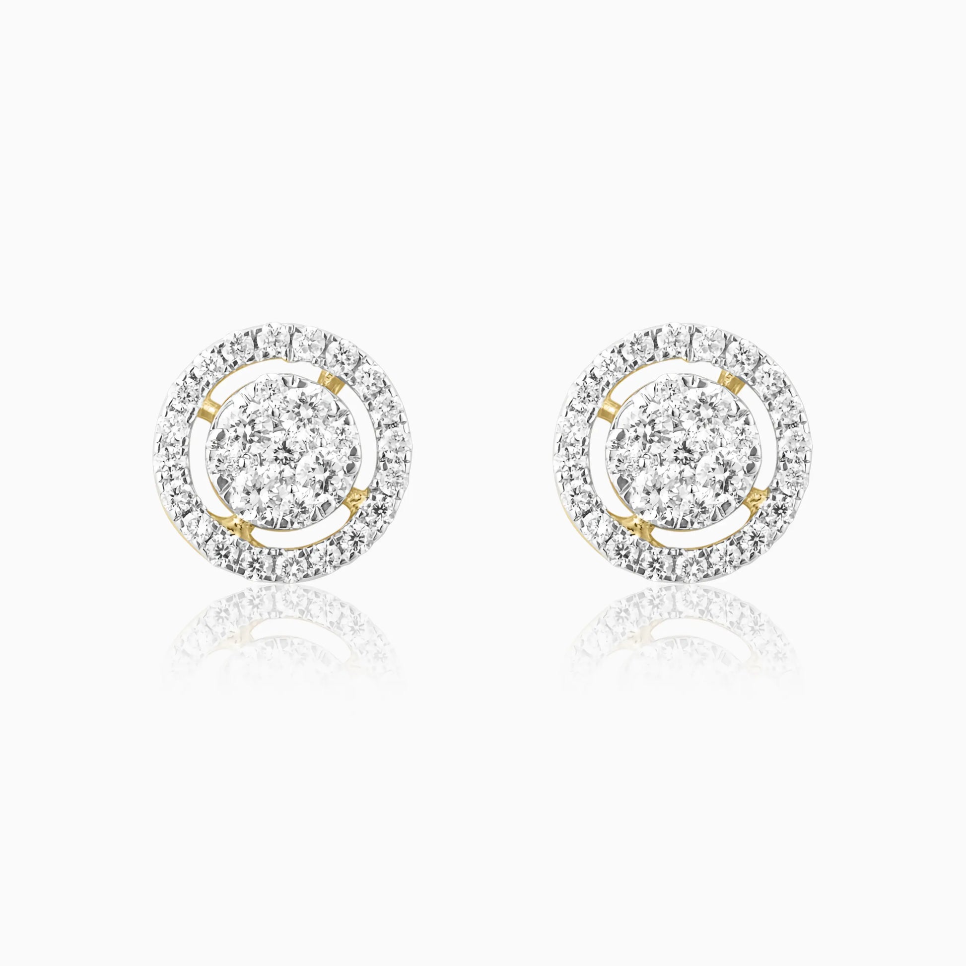 The Round Halo Cluster Diamond Earrings feature a dazzling central cluster of diamonds surrounded by a brilliant halo, creating a radiant, eye-catching design. Set in polished gold, these earrings offer timeless elegance, perfect for adding a touch of sophistication to any look.