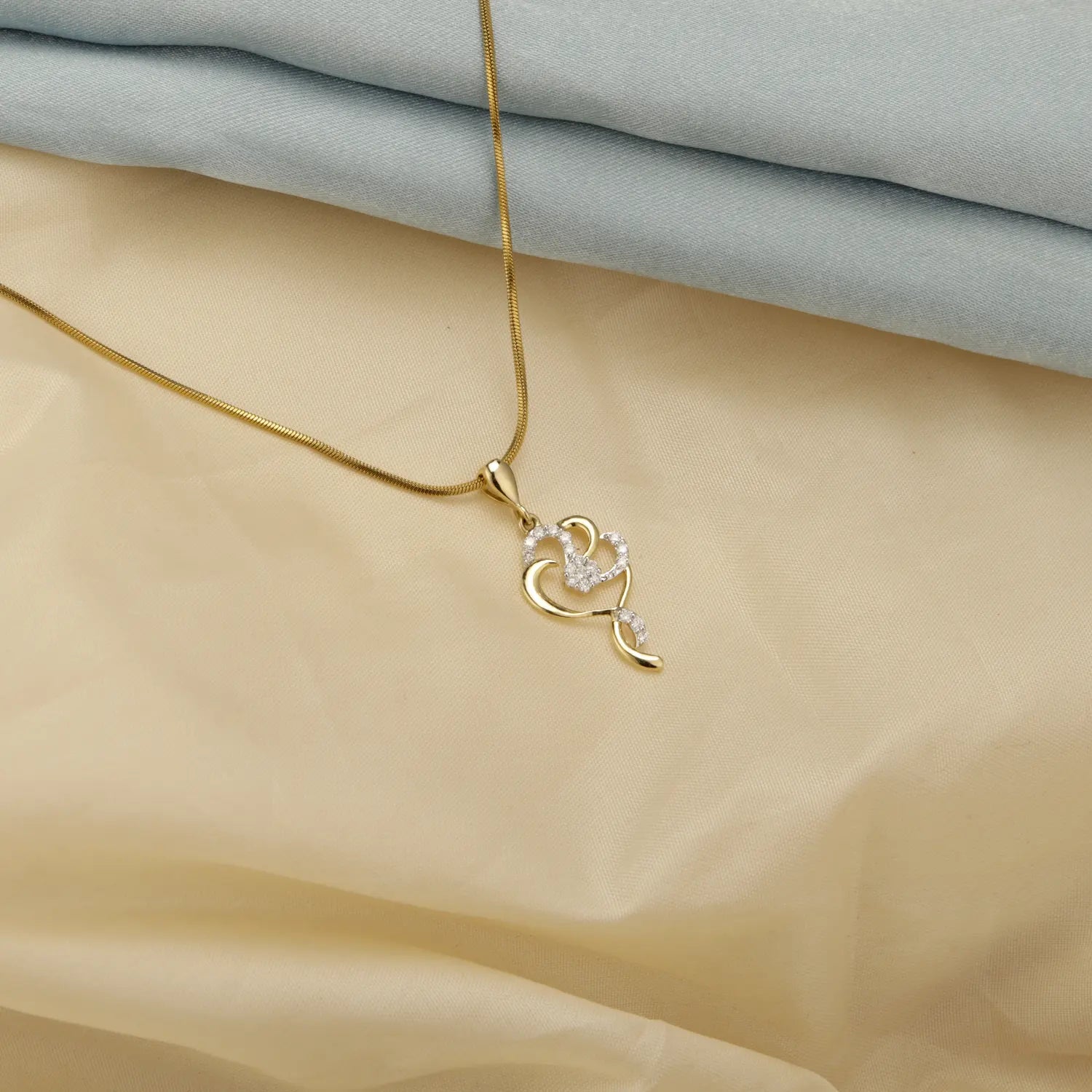 The Whimsical Diamond Pendant features a playful, swirling design adorned with shimmering diamonds, creating a light and elegant look. Crafted in polished gold, this pendant adds a touch of charm and sophistication, making it perfect for both everyday wear and special occasions.